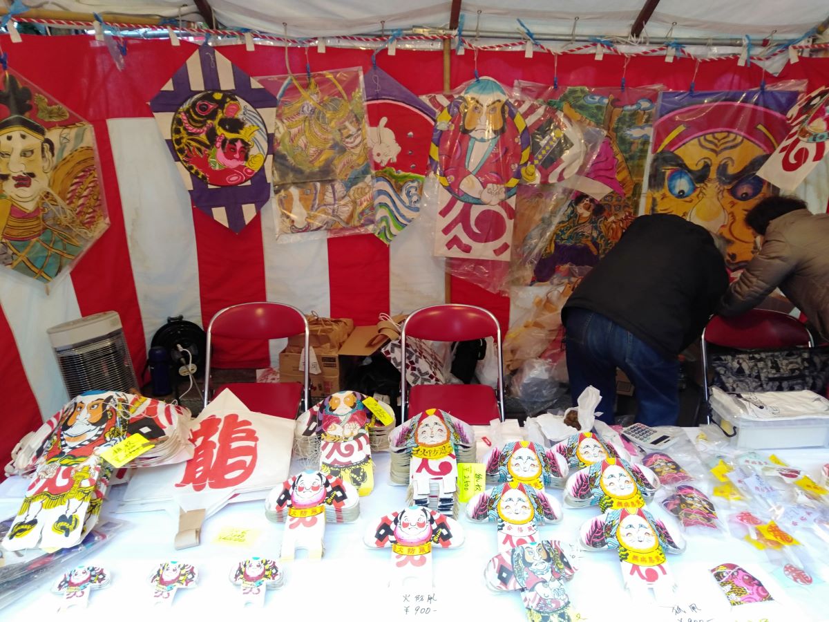 この日は特別な露店が登場し、職人さんによる珍しい凧も販売されています。